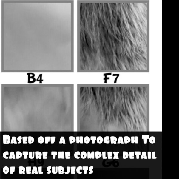 A MEDIUM VERSION made up of black, gray, and white values, and comes in a normal and extra detailed version.