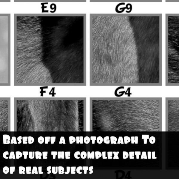 A MEDIUM VERSION made up of black, gray, and white values, and comes in a normal and extra detailed version.