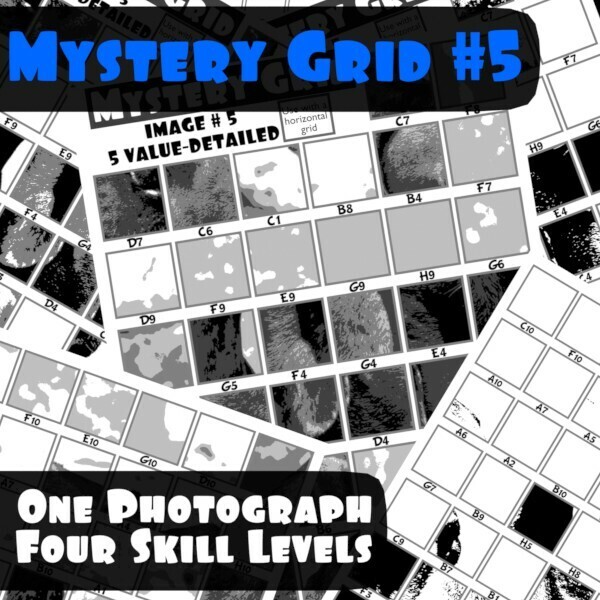 The goal of any aspiring artist should be to master drawing real subjects, but there are often challenges that make it hard. The complex details can quickly become overwhelming, and the subject just seems too challenging for beginning artists. Mystery grid drawing activities can help. By breaking the image into smaller sections, it becomes easier to focus on the details in that area. Second, by not knowing the subject, the artist doesn't know if it is a subject they think they can draw or not. When creating this resource, a real photograph was used as the starting point. Some activities use an image that has been redrawn and stylized, losing a lot of detail. By using a photograph, all the complex visual information is preserved and helps create a more realistic drawing.